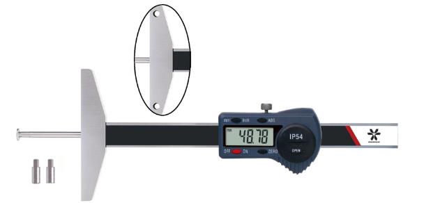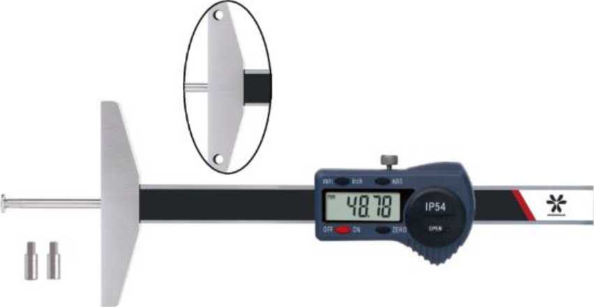 Штангенглубиномеры модели 3118 оснащены тремя сменными наконечниками: один с поперечным выступом и два с продольным выступом (с плоской и сферической измерительными поверхностями).
