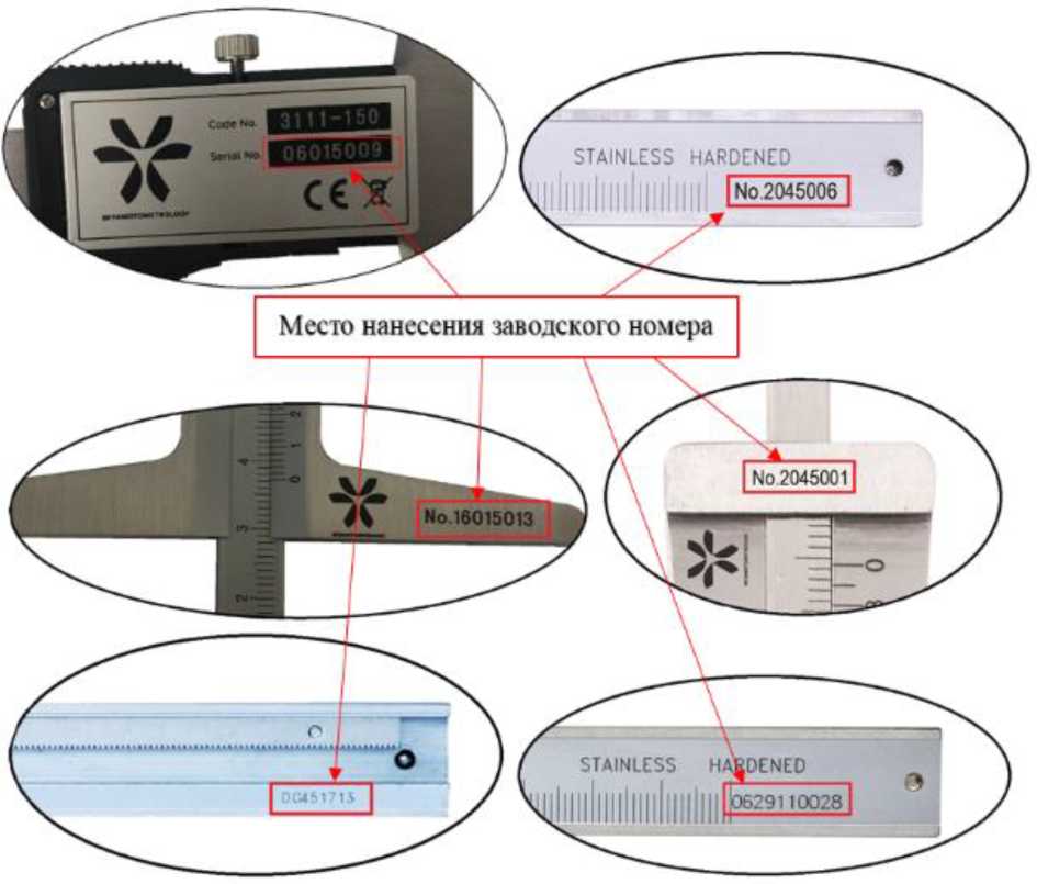 Товарный знак MIYAMOTOMETROLOGY наносится на паспорт штангенглубиномеров типографским методом и/ или на футляр штангенглубиномеров краской или методом лазерной гравировки, а также может наноситься на штангу и/или рамку (в том числе на основание и/ или отсчетное устройство) методом лазерной гравировки.