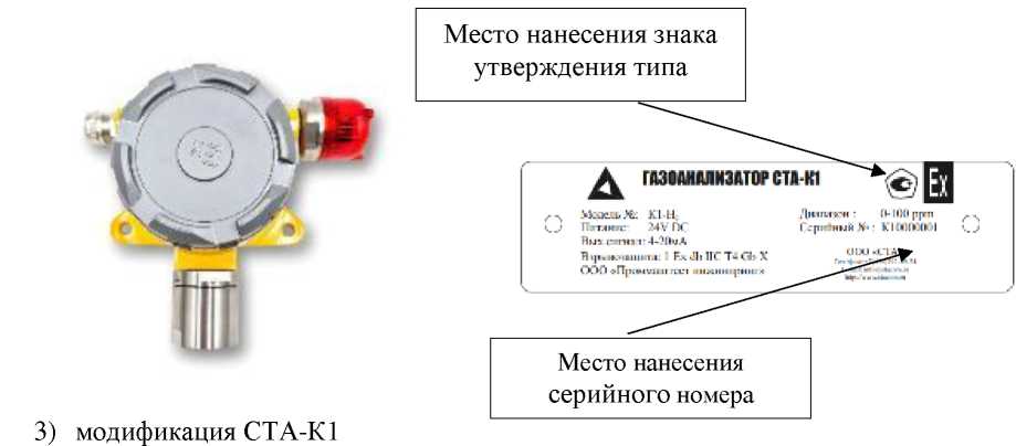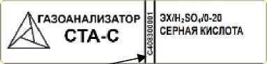 наносится на титульный лист руководства по эксплуатации типографским способом и на маркировочные наклейки газоанализаторов модификаций СТА-К1, СТА-КД1, СТА-КД2, СТА-КД3 методом цветографической печати, а также на корпус газоанализаторов модификаций СТА-КД1 и СТА-КД2 любым технологическим способом. Нанесение знака утверждения типа на газоанализаторы модификаций СТА-С, СТА-СЕ не предусмотрено.
