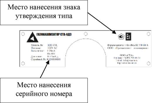 Общий вид газоанализаторов с указанием места нанесения знака утверждения типа, места нанесения серийного номера представлен на рисунке 1. Нанесение знака поверки на газоанализаторы в обязательном порядке не предусмотрено. Пломбирование мест настройки (регулировки) газоанализаторов не предусмотрено.