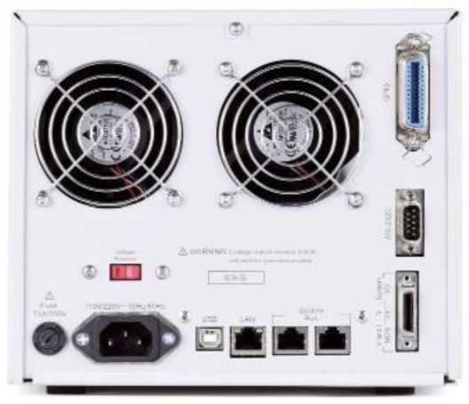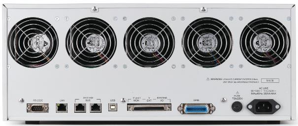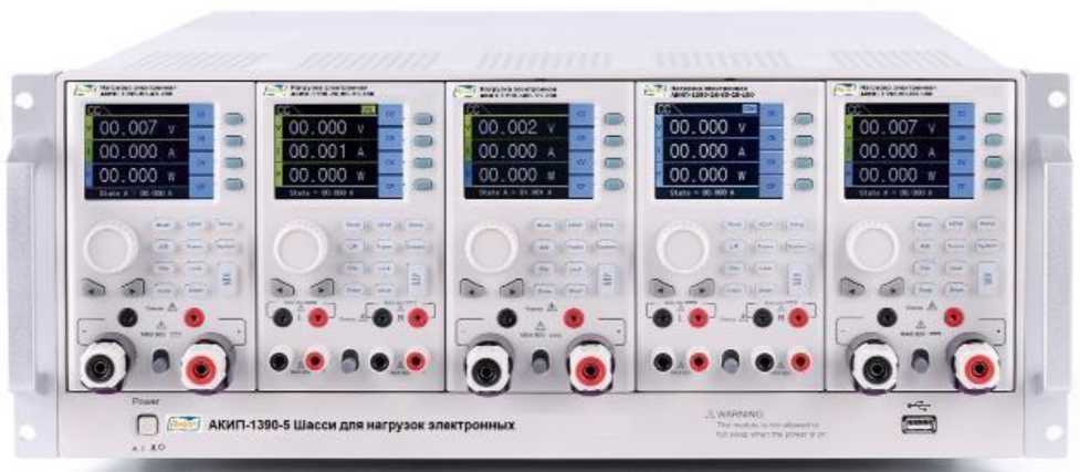 Нагрузки имеют модульную конструкцию и предназначены для установки в двухслотовое шасси АКИП-1390-2 или в пятислотовое шасси АКИП-1390-5. Шасси обеспечивает подключение к установленным модулям напряжения питания, вывод внешних разъемов цифровых интерфейсов RS-232C, LAN, USB, GPIB, вывод разъема аналогового управления и доступ к плавкому предохранителю. Дополнительно на передней панели есть разъем USB для работы с внешней памятью.