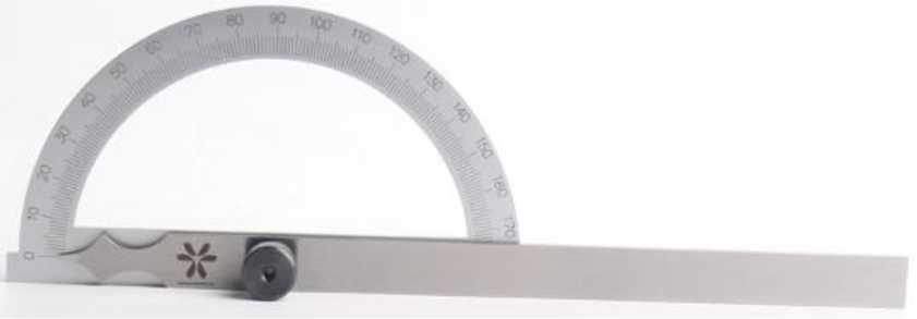 - 8125, 8127, 8128 - для измерений углов и рисования вспомогательных линий. Состоят из полукруглого лимба с нанесенной на нем угловой шкалой, измерительной линейки и стопорного винта. Модели отличаются внешним видом, метрологическими и техническими характеристиками;