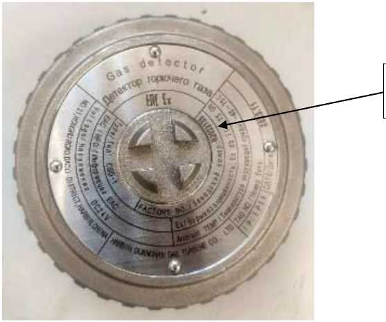 Заводской номер в буквенно-цифровом формате наносится методом гравировки на маркировочную табличку, размещенную на крышке детекторов.