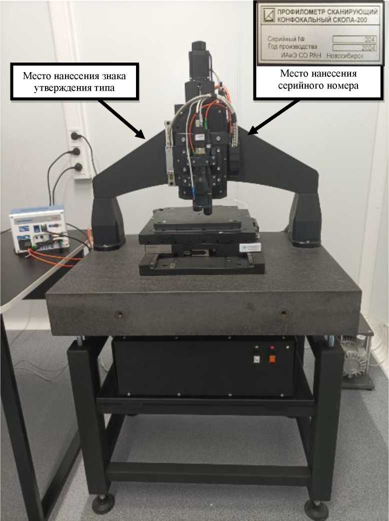 Рисунок 1 - Внешний вид, схема нанесения серийного номера и знака утверждения типа профилометра сканирующего конфокального СКОПА-200