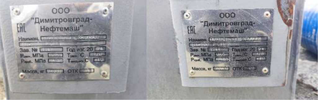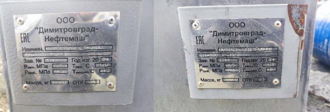 Фото табличек с указанием заводских номеров и эскизы резервуаров приведены на рисунках 1-3.