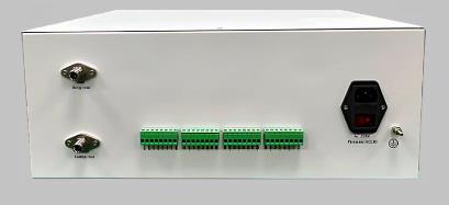 На задней панели анализаторов расположены разъемы для электрического питания, элементы заземления, отверстия для забора и выдачи воздуха и разъемы для RS-485 и аналогового выхода от 4 до 20 мА.