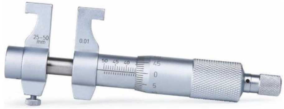 Нутромер состоит из микрометрического винта, измерительных поверхностей с двухконтактным касанием к измеряемому изделию, стопора, стебля со шкалой (с цифровым отсчетным устройством), барабана.