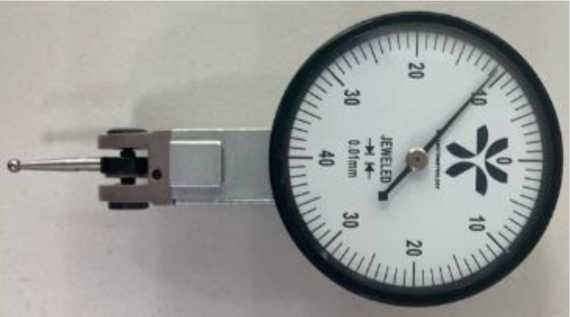 Индикатор состоит из корпуса со встроенным механизмом, измерительного рычага со сферическим измерительным наконечником, круговой шкалы со стрелкой. Настройка на «ноль» или любое другое деление шкалы производится с помощью подвижного ободка.