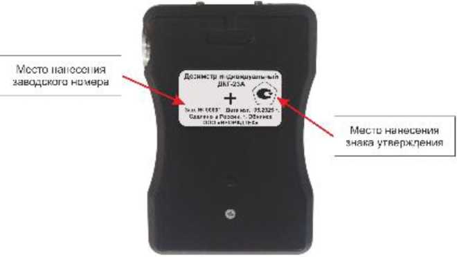 «Дозиметр индивидуальный ДКГ-23А. Паспорт» и на шильд методом термотрансферной печати.