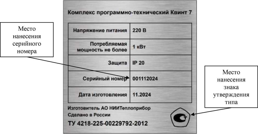 Маркировочная табличка комплексов с обозначением места нанесения серийного номера и знака утверждения типа приведена на рисунке 4.