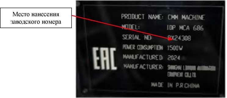 Заводской номер в виде буквенно-цифрового обозначения, состоящего из арабских цифр и букв латинского алфавита, наносится ударным способом на табличку, расположенную на боковой поверхности гранитного измерительного стола или на боковой поверхности колонны портала.
