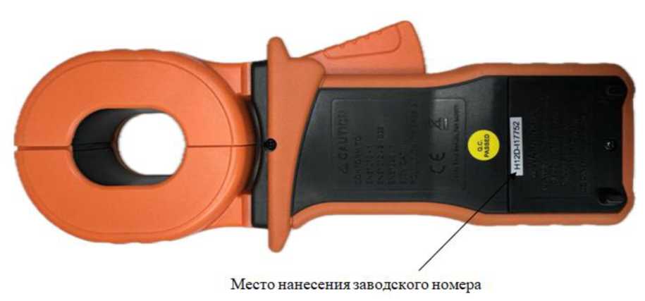 Заводской номер в виде цифрового или буквенно-цифрового обозначения, состоящего из арабских цифр и букв латинского алфавита, наносится типографским способом на шильдик, наклеиваемый на заднюю панель корпуса клещей.