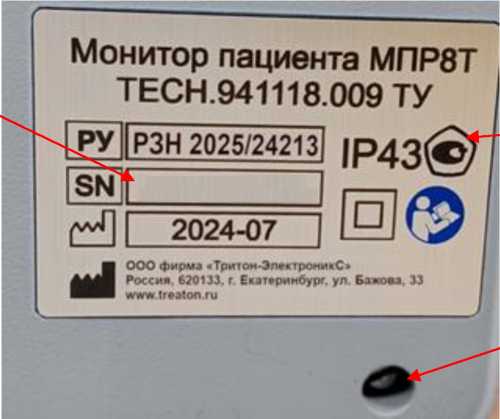 Серийный номер, идентифицирующий каждый экземпляр мониторов, в виде буквенноцифрового обозначения наносится методом печати на наклейку, размещаемую на оборотной стороне корпуса.