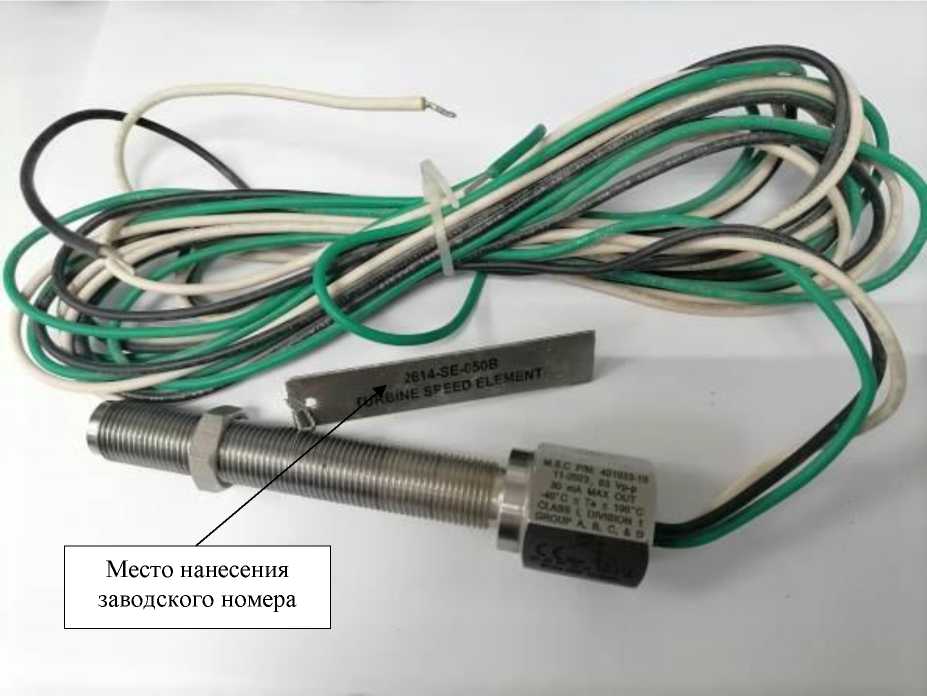 Заводские номера датчиков частоты вращения 401033-10 в цифро-буквенном формате наносятся на бирку методом гравировки. Нанесение знака поверки на средство измерений не предусмотрено.