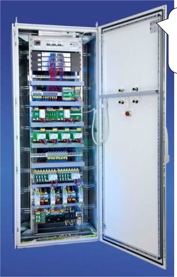 наносится на паспортные таблички шкафов ПТК методом лазерной гравировки и на титульные листы эксплуатационной документации ПТК типографским способом.