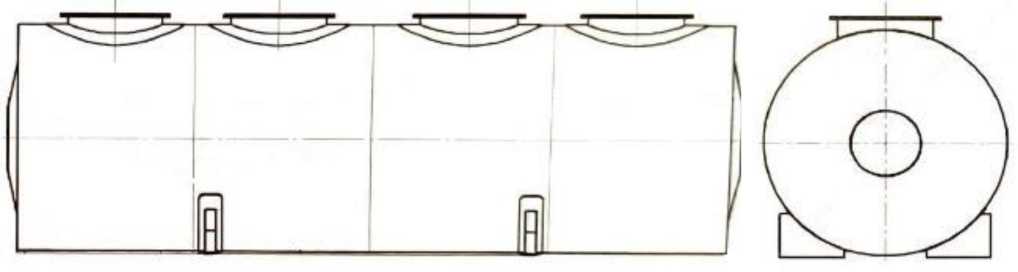 Эскиз общего вида резервуара горизонтального стального цилиндрического РГС-20-2 приведен на рисунке 1.