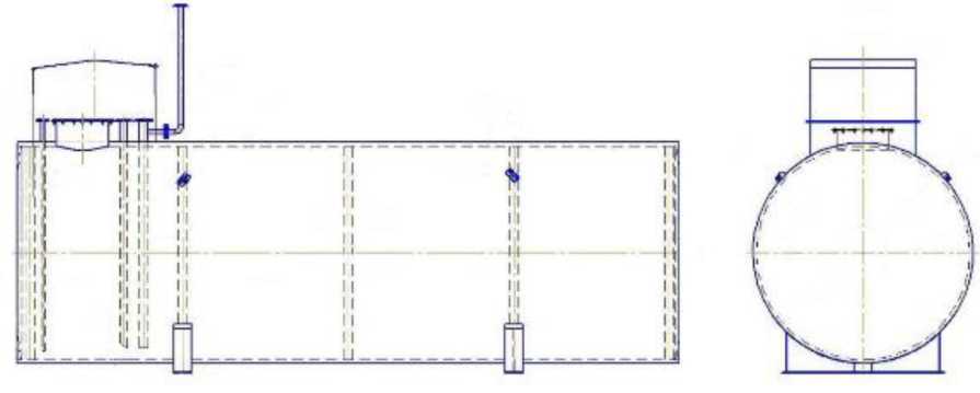 Резервуары представляют собой горизонтально расположенные цилиндрические стальные сосуды с днищами.