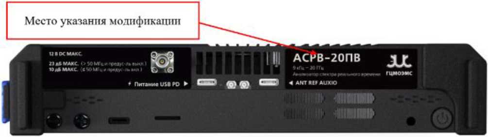 Рисунок 6 - Место указания модификации анализаторов спектра реального времени портативных АСРВ-ПВ