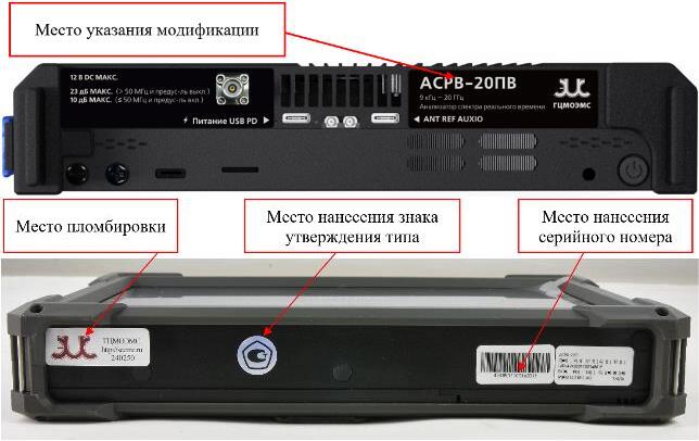 Рисунок 4 - Места указания модификации анализаторов спектра реального времени портативных АСРВ-П