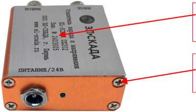 Маркировка усилителя, включая заводской номер, состоящий из цифр арабского алфавита, выполнена методом гравировки или самоклеящейся наклейки.