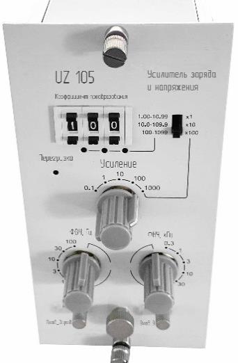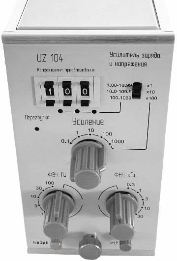 Конструктивно усилители представляют собой электронные модули (усилитель заряда, усилитель напряжения, фильтры нижних частот (ФНЧ), фильтры верхних частот (ФВЧ), дисплей и индикаторы), помещенные в корпус.