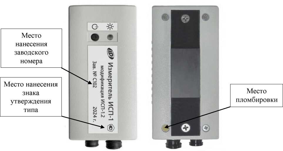 Места нанесения заводского номера и знака утверждения типа, а также место пломбировки преобразователя сигналов представлены на рисунке 3.