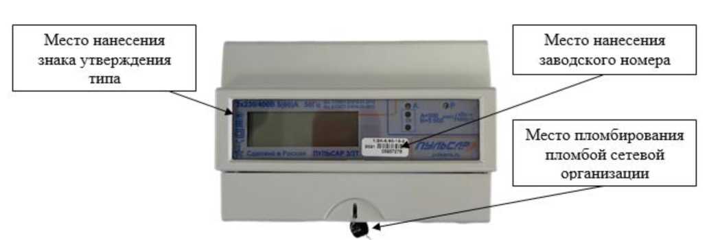 наносится на лицевой панели счетчика и титульных листах паспорта и руководства по эксплуатации любым технологическим способом, не ухудшающим качество.