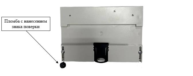 Общий вид счетчиков с установкой на дин-рейку с указанием места пломбирования пломбой сетевой организации, места нанесения знака утверждения типа, места нанесения заводского номера представлен на рисунке 2. На рисунке 3 представлен общий вид счетчиков с указанием места ограничения доступа к местам настройки (регулировки). Способ ограничения доступа к местам настройки (регулировки) - пломба с нанесением знака поверки.