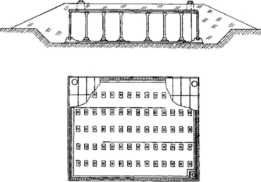 Стеновые панели сборные железобетонные. В центральной части резервуара выставлены колонны, на которые опираются ребристые плиты.