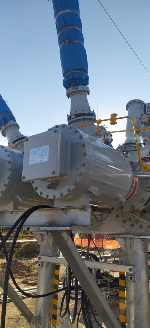 Трансформаторы выполнены в виде опорной конструкции в едином блоке. Первичная и вторичные обмотки размещены в герметичном баке, заполненном смесью элегаза.