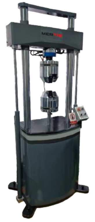 Принцип действия машин основан на преобразовании электрической энергии сервогидравлическим приводом в линейное перемещение подвижного захвата и соответствующую нагрузку, прикладываемую к образцу, которая преобразуется тензорезисторным силоизмерительным датчиком в электрический сигнал, изменяющийся пропорционально нагрузке.