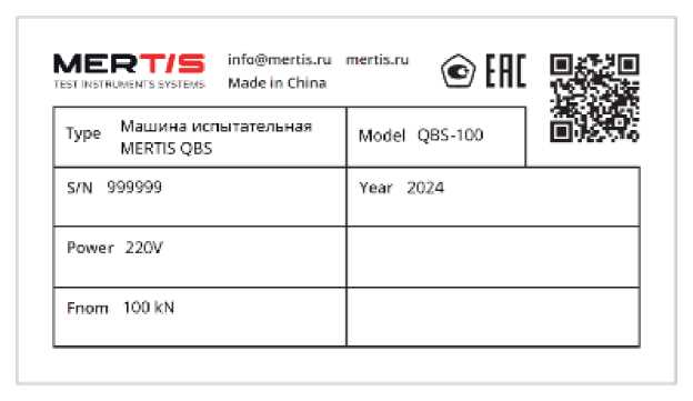 Серийный номер машин в буквенно-цифровом формате наносится методом печати на маркировочную табличку, расположенную на основании машины с левой стороны. Общий вид маркировочной таблички приведён на рисунке 5. Нанесение знака поверки на машины