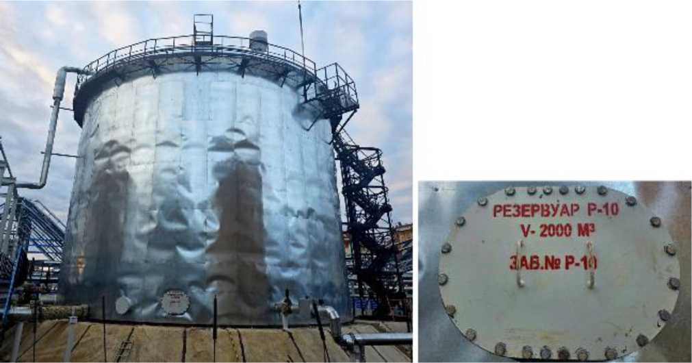 Рисунок 1 - Общий вид резервуара РВС-2000 зав. № Р-10 и место нанесения заводского номера