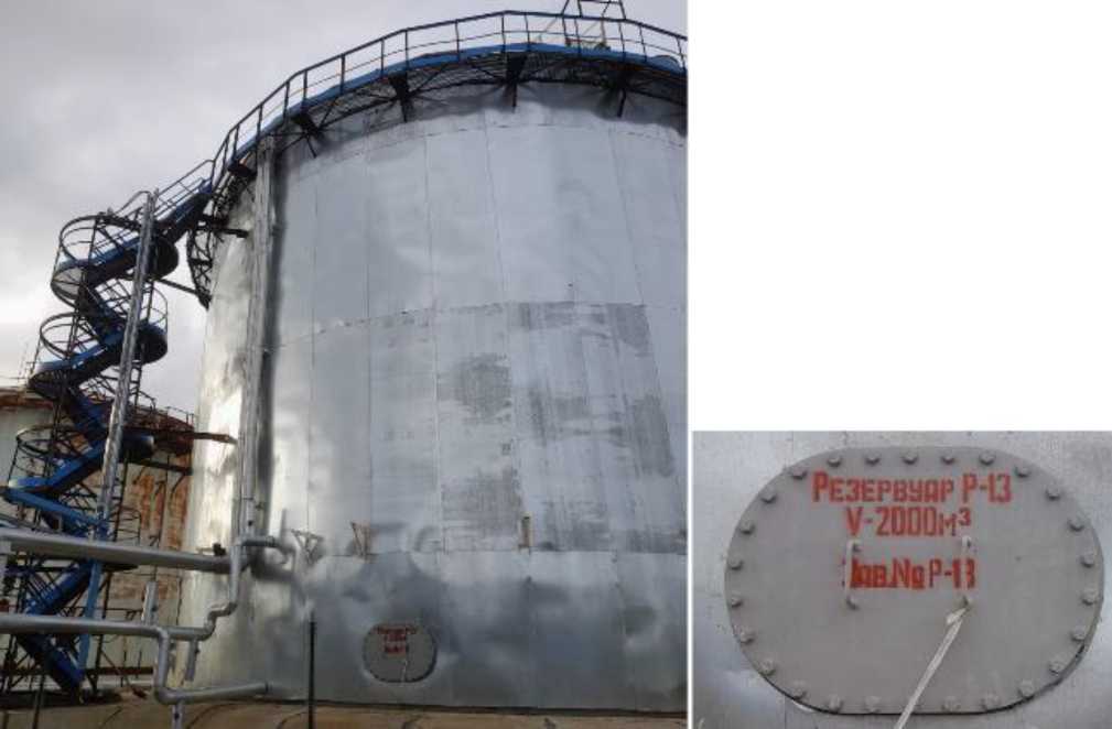 Рисунок 2 - Общий вид резервуара РВС-2000 зав. № Р-13 и место нанесения заводского номера