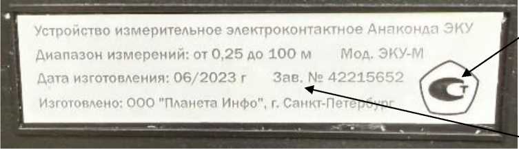 Рисунок 3 - Маркировочная табличка устройства измерительного электроконтактного Анаконда ЭКУ модификации ЭКУ -М с указанием места нанесения знака утверждения типа и заводского номера