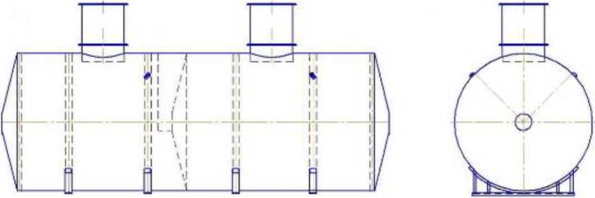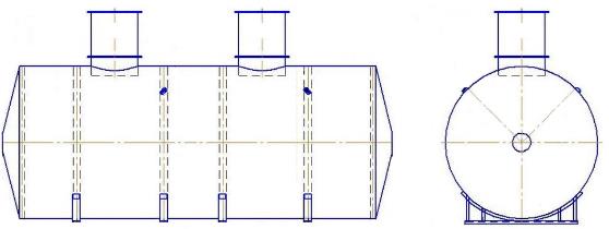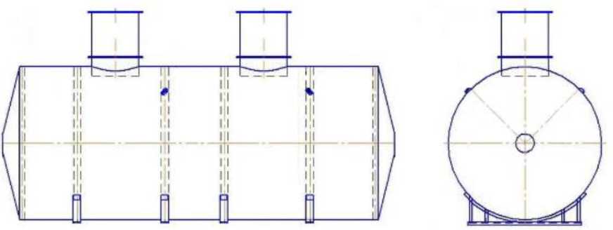 Резервуары представляют собой горизонтально расположенные цилиндрические стальные сосуды с днищами.