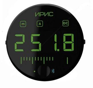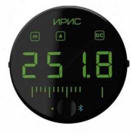 Модификации ИРИС-(')-115Б^-/\-Х-Х. ИРИС-О-120-V-A-X-X имеют шесть светодиодных индикаторов для отображения информации о множителе (милли/кило), единицах величин отображаемой величины (V/A) и роде тока (АС/DC), барграф для отображения уровня входной величины в процентах от выбранного номинального значения, индикатор работы Bluetooth.