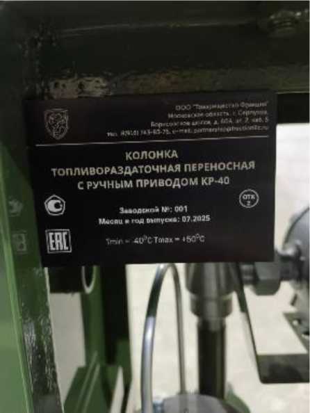 ТУ 29.99.39.190-001-5043082529-2025 «Колонка топливораздаточная переносная с ручным приводом КР-40. Технические условия»