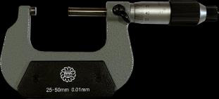 - микрометра с отсчетом показаний по шкалам стебля и барабана, с диапазоном измерений от 25 до 50 мм, класса точности 1: