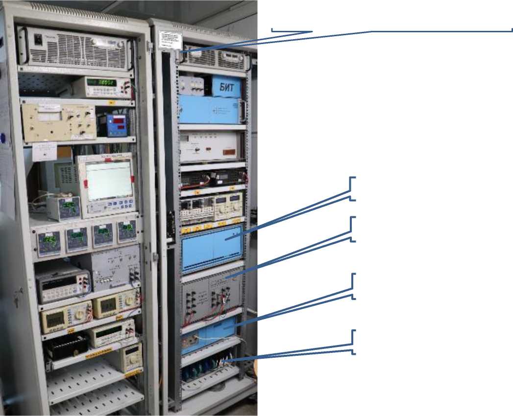 Рисунок 1. Общий вид шкафа с оборудованием АСУ ТП с указанием устройств ИК АСУ ТП и местом нанесения идентификационной бирки