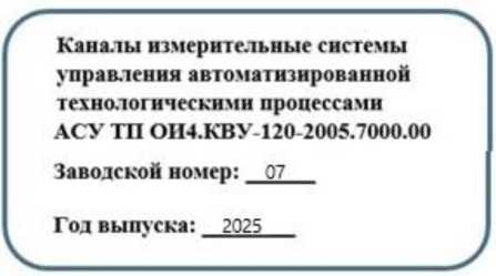наносится на титульный лист ОИ4.КВУ-120-2005.7000.00ФО «Каналы измерительные системы управления автоматизированной технологическими процессами АСУ ТП зав. № 07 ОИ4.КВУ-120-2005.7000.00. Формуляр» типографским способом.