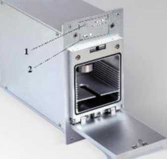 Конструкция КВ позволяет устанавливать счётный образец горизонтально на полочке КВ, обеспечивающей расстояние от счетного образца до блока детектирования альфа-излучения БДА03 от 2,5 мм до 42 мм на 11 полках.