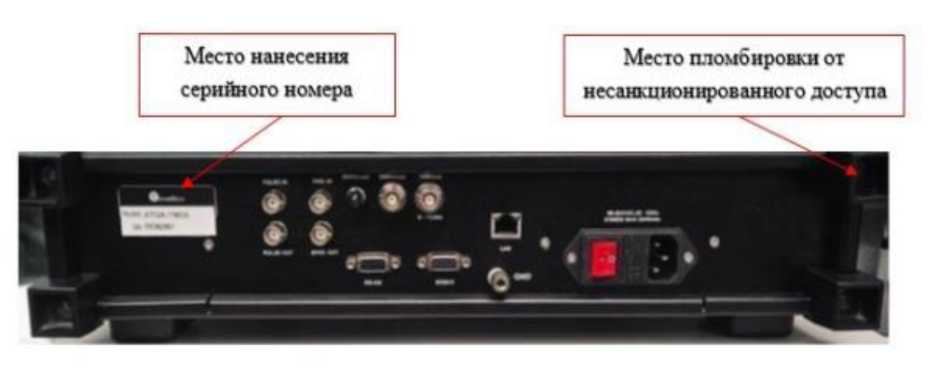 Серийный номер, идентифицирующий каждый экземпляр средства измерений, в шестизначном буквенно-цифровом формате, состоящего из арабских цифр и латинских букв, наносится методом наклейки на заднюю панель.