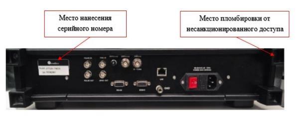Обозначение места нанесения серийного номера и схема пломбировки от несанкционированного доступа приведены на рисунке 2.