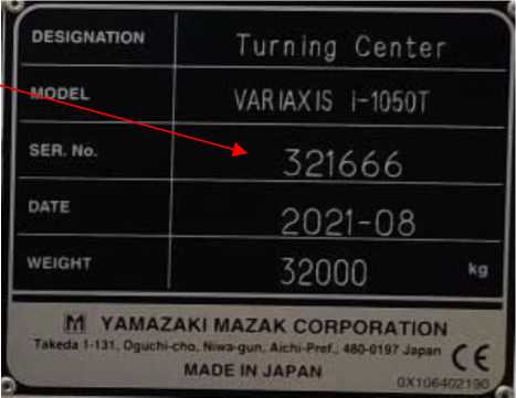 Серийный номер в цифровом формате способом лазерной гравировки нанесен на маркировочную табличку, размещенную на корпусе станка VARIAXIS i-1050T.