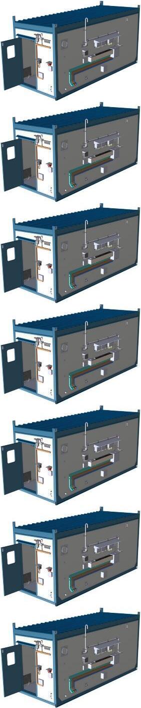 АБАК ПЛК, ЭкоСпектр-Ф, блок вторичного преобразователя ВЗЛЕТ РГ, система подготовки пробы размещены в блоке-контейнере DB1. Блок-контейнер DB1 оснащен системами освещения, климат-контроля, пожарной сигнализации и обнаружения утечек.