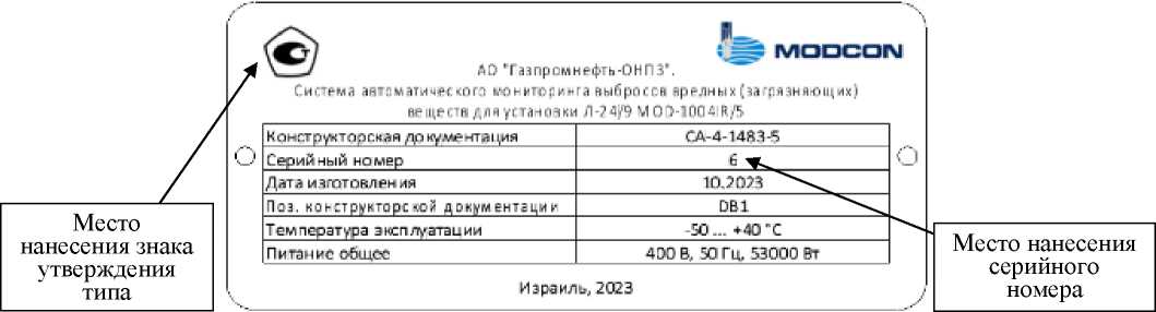 наносится на маркировочную табличку методом термопечати и на титульные листы руководства по эксплуатации и паспорта типографским методом.