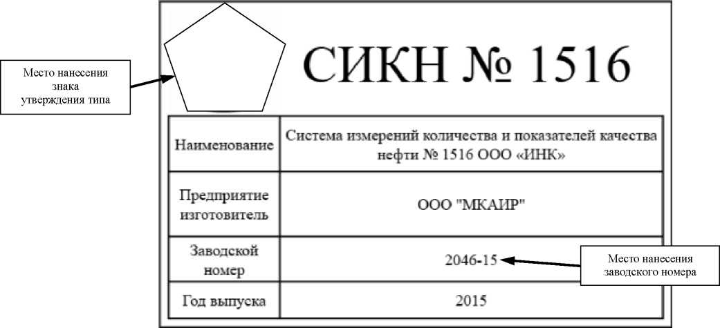 наносится на маркировочную табличку методом металлографики и в нижней части титульного листа инструкции по эксплуатации СИКН.