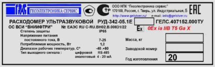 наносится на маркировочную табличку, расположенную на корпусе расходомера, методом, принятым на заводе-изготовителе, обеспечивающим четкое изображение, стойкость к внешним воздействующим факторам, а также сохранность в течение установленного срока службы и на титульные листы формуляра и руководства по эксплуатации типографским способом.
