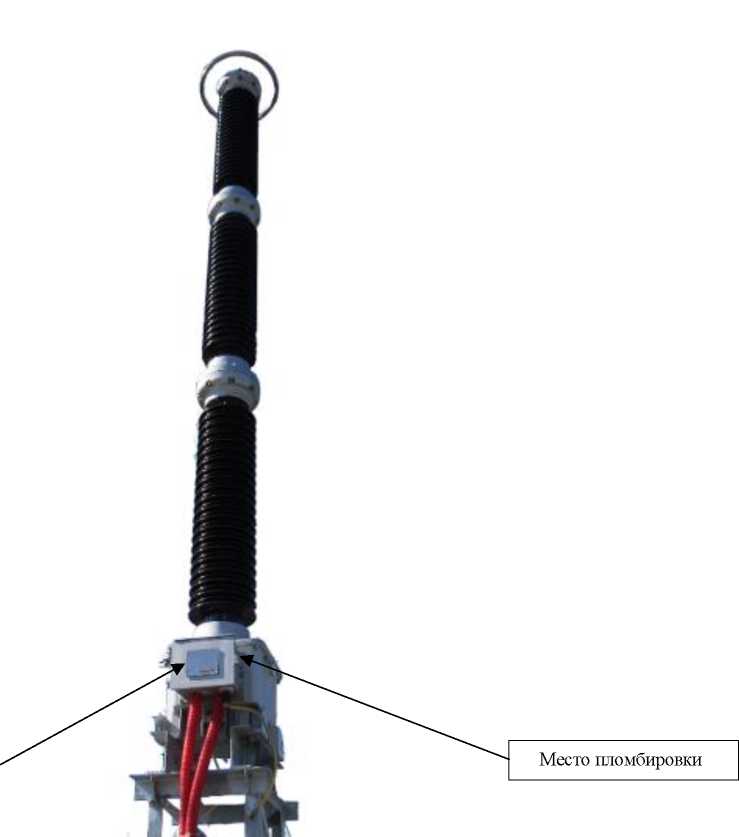 Емкостной делитель напряжения состоит из набора конденсаторов с бумажно-пропиленовой изоляцией обкладок, помещенных в залитый синтетическим маслом изолятор из фарфора или композитного материала. Делитель смонтирован в виде колонны из трех секций.